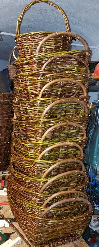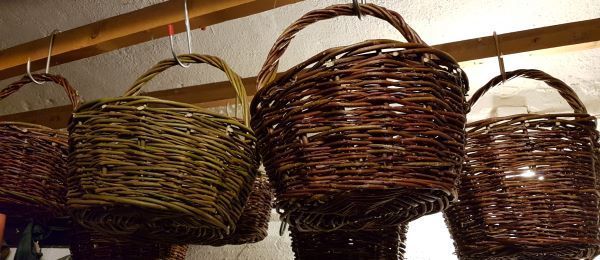 In seiner Werkstatt entstehen runde, ovale und eckige Körbe in verschiedenen Größen. Die Körbe sind sehr robust und sind für den täglichen Gebrauch geeignet.